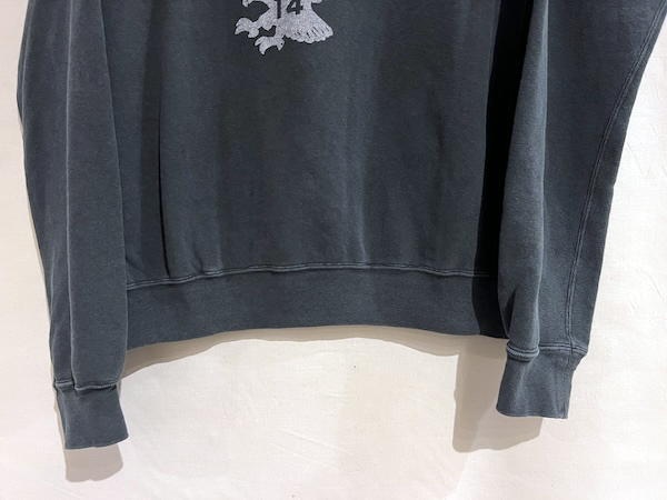 SP加工とは(スペシャル加工) 1930年代から60年代後半のスウェットは主に直接染料と硫化染料が使われていました。 古着の退色する原理として考えられるのは空気中の酸素と染料を留めているアミノ酸が酸化結合して加水分解を起こし、炭素になり朽ち果てる工程だと考えられます。 REMI RELIEFのSP加工はこの自然の原理を再現して、昔ながらの直接染料を使い酸素と結合させて、ゆっくりと長時間かけて染料を退色させています。ボディもそれなりのダメージをおいますが、薬品を入れたりバイオによる生地を無理に融かしたりするような加工とは違い、古着本来の経年によるダメージにもっとも近い雰囲気で、着続けていくほどに本当の古着と見分けがつかなくなるよう自然な加工を施しています。
